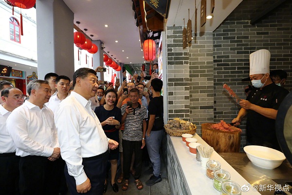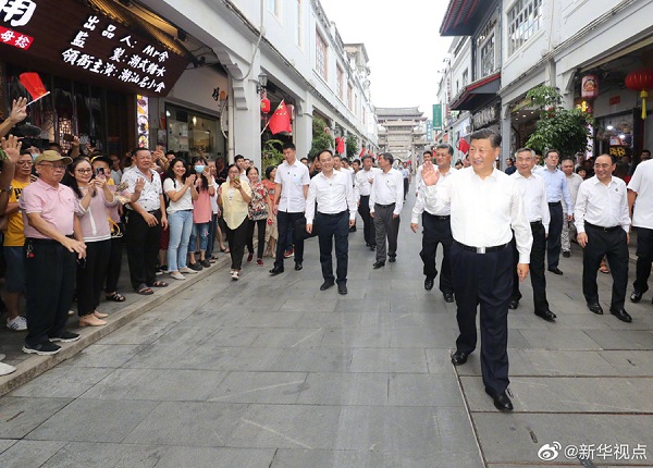 习近平总书记12日赴广东考察调研。当天下午,他首先考察了潮州市广济桥、广济楼、牌坊街,察看文物修复保护、非遗文化传承、文旅资源开发等情况。随后,习近平前往潮州三环(集团)股份有限公司,了解企业自主创新和生产经营情况。(文字记者:张晓松、朱基钗 摄影记者:鞠鹏、王晔、李响)